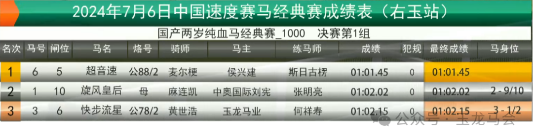 冠军:超音速 马主:侯兴建 骑师:麦尔梗