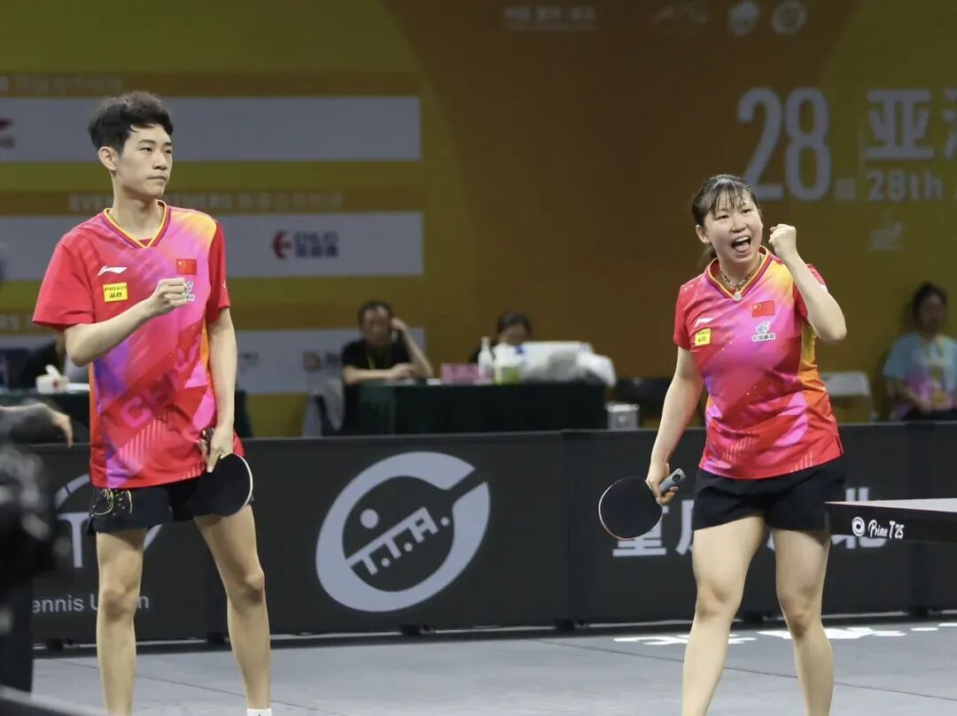 混双项目中,纵歌曼与搭档完美配合,再次登顶领奖台。个人成就“四冠王”的辉煌战绩,而上一次包揽四项冠军的还是2017年的孙颖莎。
