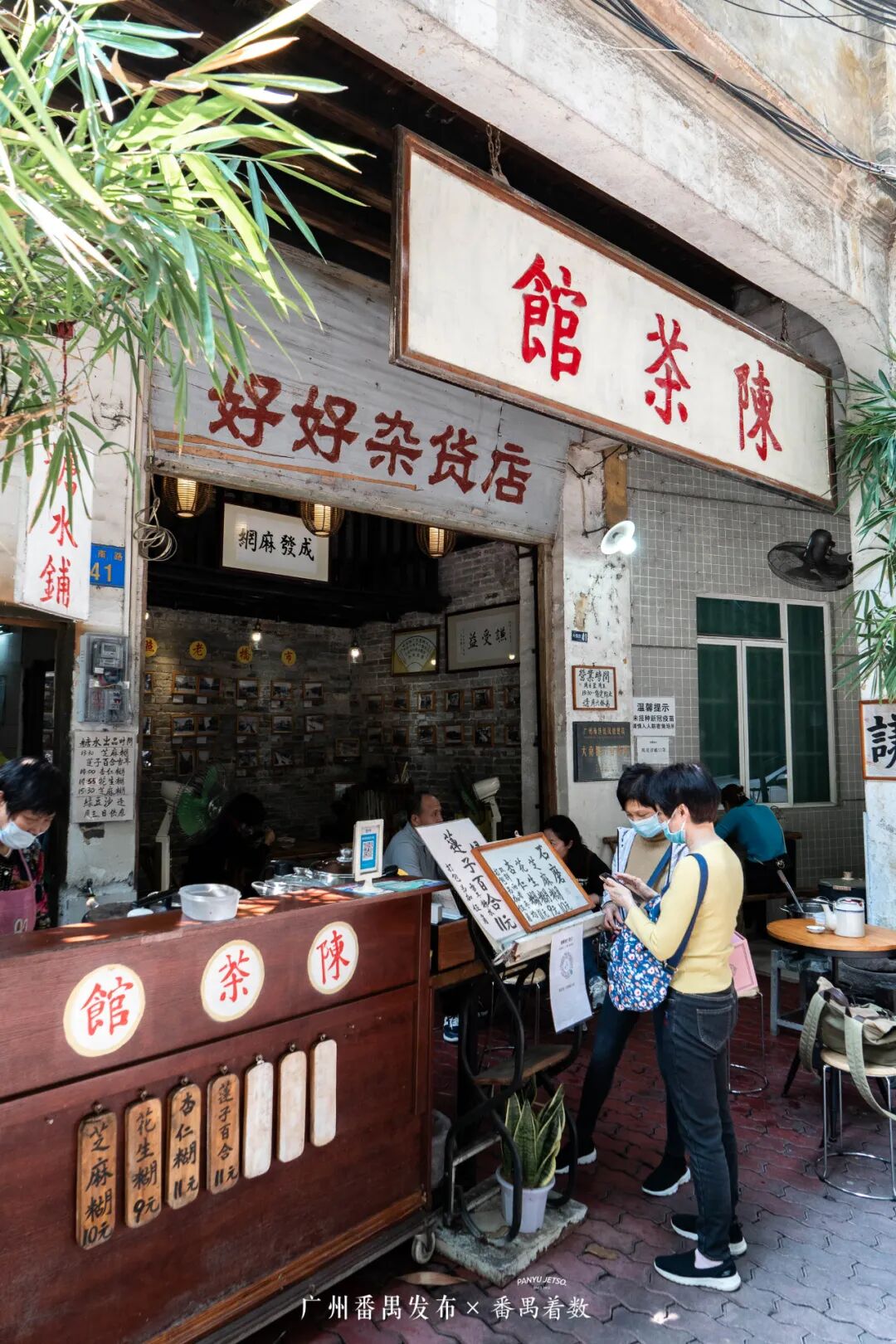 而开在市桥大南路的41号骑楼的陈茶馆,四围外墙斑驳发黄,显示出久远的年代感,店里古旧的物件和氛围,则让人重回儿时的记忆。