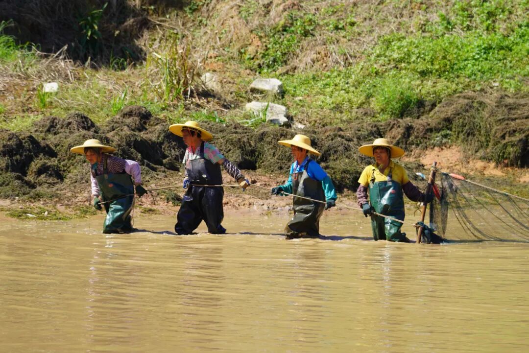 ▲ 虾农们正在捕捞虾。邓达荣 摄