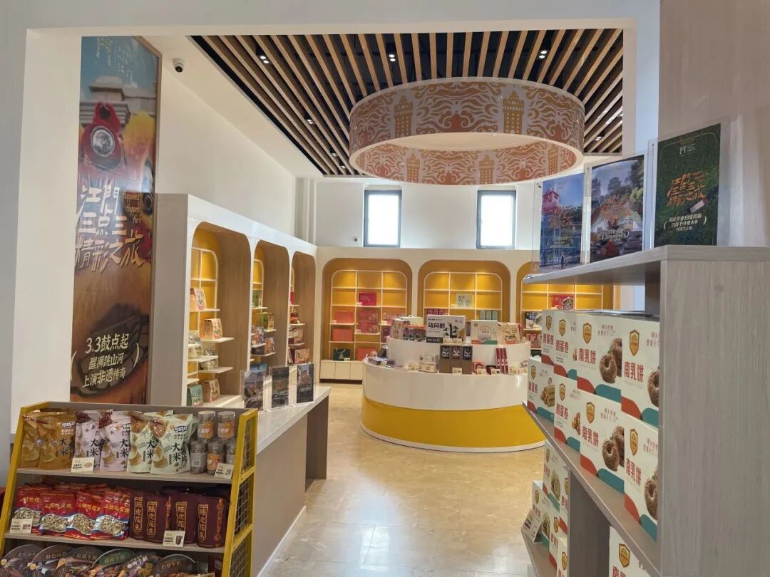 “江门开平优品馆”位于开阳高速梁金山服务区“碉楼”一楼,富有浓郁的开平侨乡地方特色。店内设多个销售展柜,包括优品售卖区、文创陈列区及宣传展示区。门前大屏轮番播放江门三点三和开平特色宣传视频,动静结合,给过往旅客带来更好的体验。