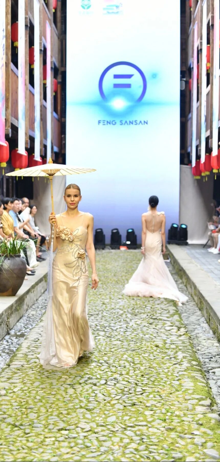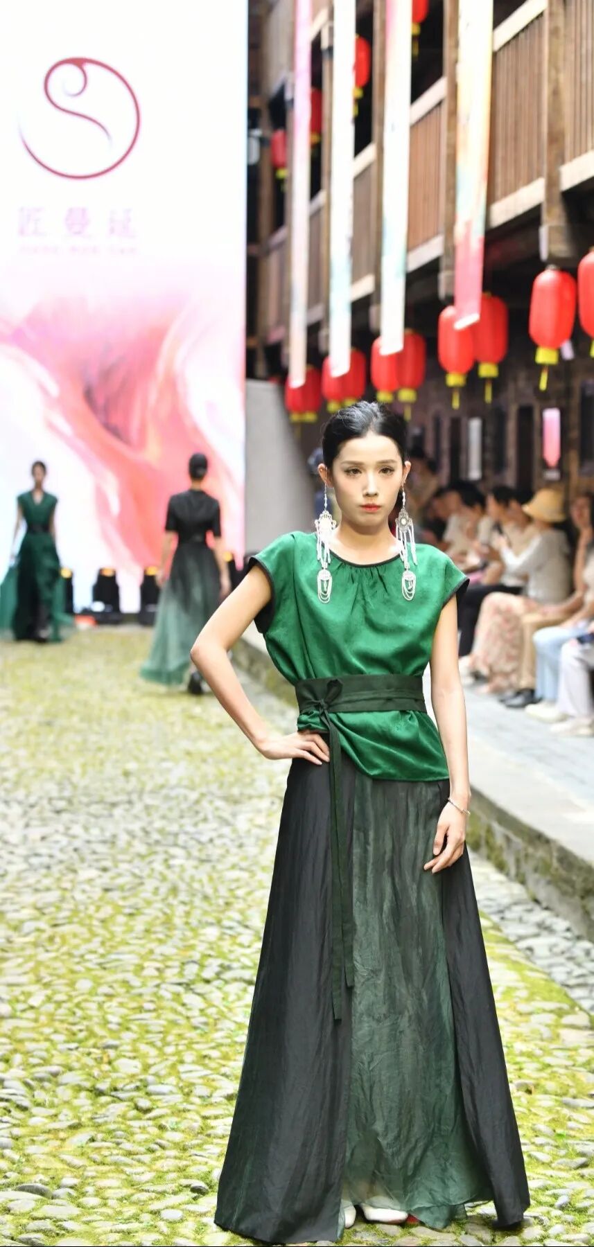 在长围的见证下,《百年国潮,围楼新生》非遗国际时装秀不仅是一场视觉的盛宴,更是一次文化的洗礼。设计师们以古老的客家围屋为舞台,将传统非遗与现代时尚设计巧妙融合,让古老的围楼文化遗产在时尚的舞台上焕发出新的生机与活力。古朴长围与时尚时装交相辉映、相得益彰、毫不违和,不仅展现了客家文化的博大精深与独特魅力,更为传统文化的传承与发展书写了新的篇章。
