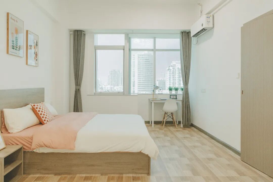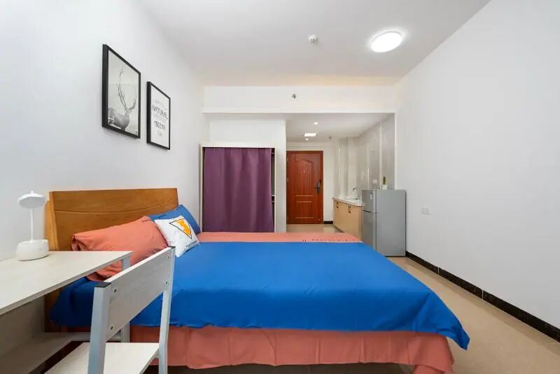 房间配置:24小时热水,独立空调,冰箱,床,WIFI,衣柜,电视柜,橱柜,智能门锁。