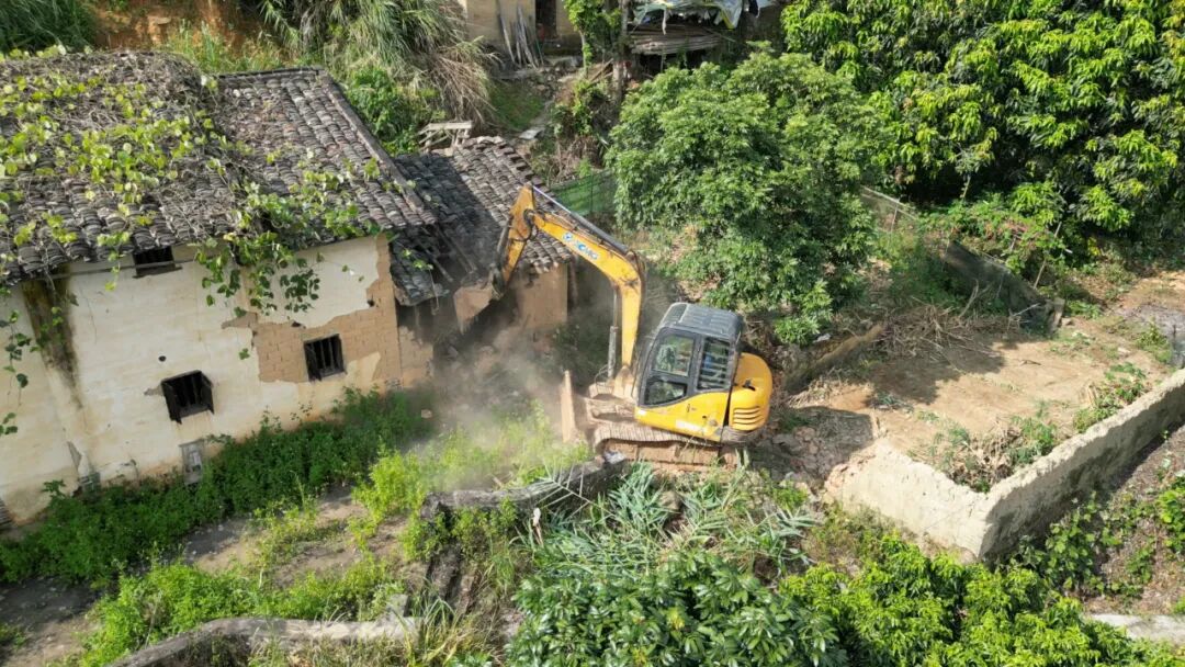 7月14日下午,记者在高村镇葵洞村委一处清拆现场看到,挖掘机正对老旧泥砖房进行清拆。与此同时,该村还对高速公路沿线赤膊房外立面开展美化改造工作。
