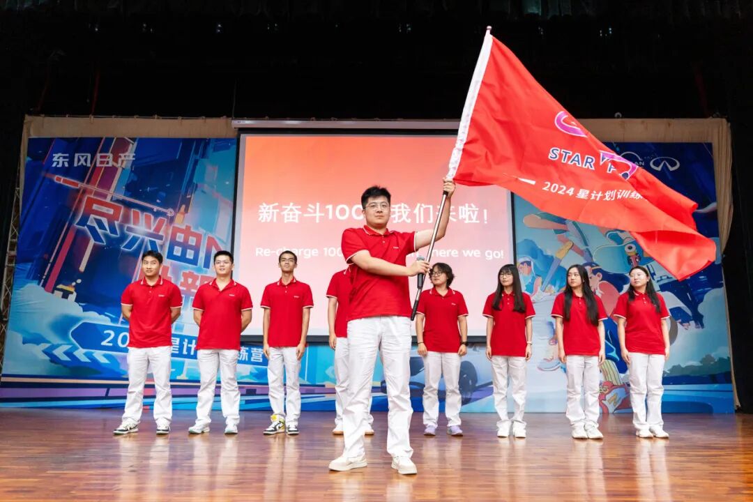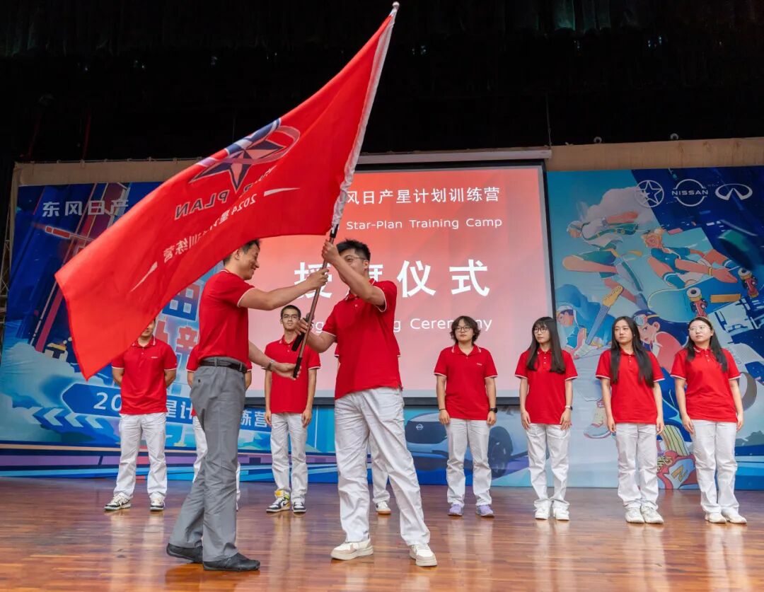 2024东风日产星计划训练营开营,东风有限(东风日产)党委书记、工会主席王强为红衫军授旗,红衫军发出新生宣言“新奋斗100,我们来啦”!
