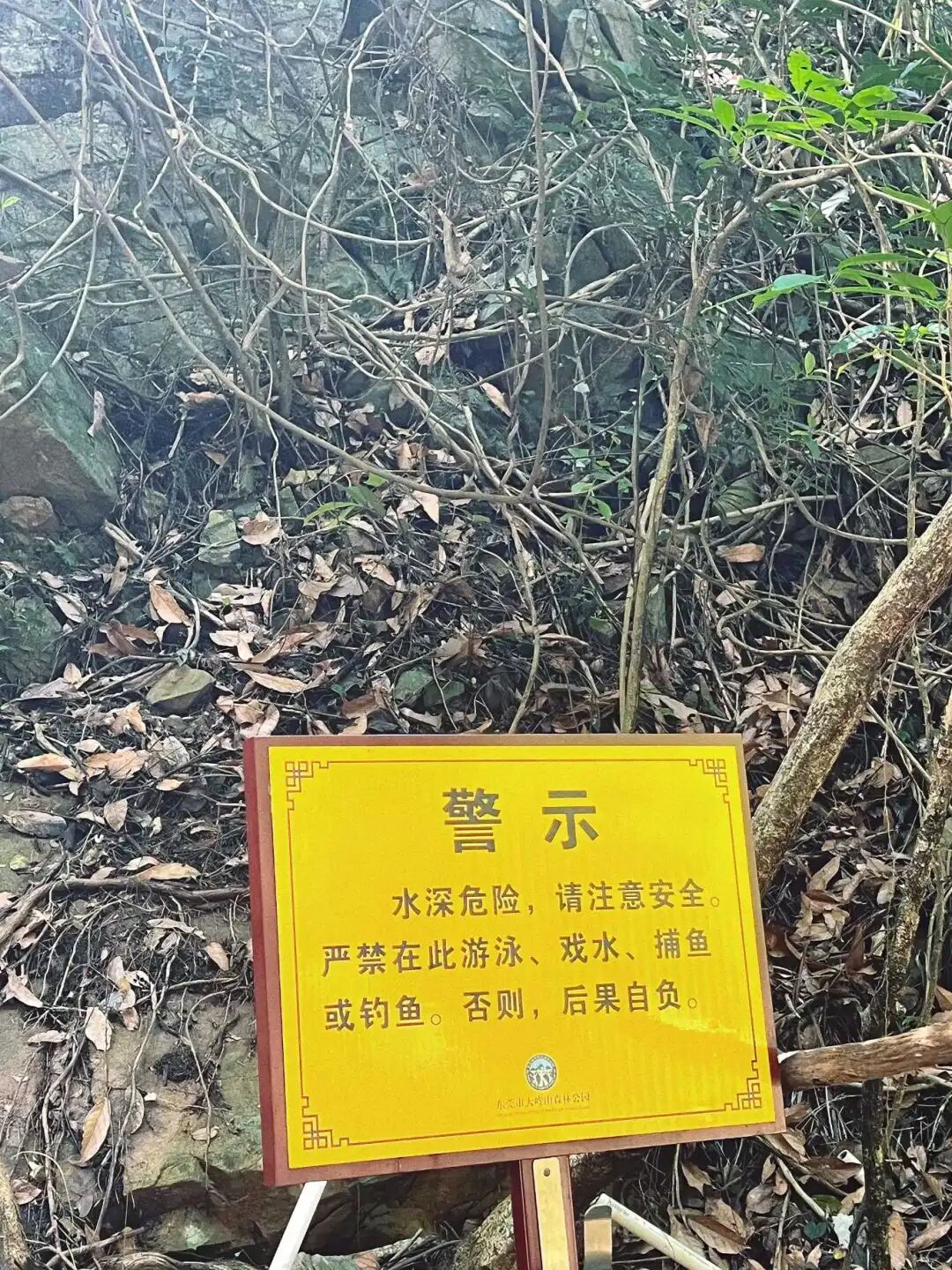 记者在治安班长的带路下,走进山里,寻找这条瀑布,发现这山路真不好走,坡又陡又窄,遇到雨天路滑,就更危险了,有些人走“野路”来到这里。记者到了现场看到,周边除了设置了警示牌,景区工作人员也对在此玩水的游客进行劝退,纷纷离开了。