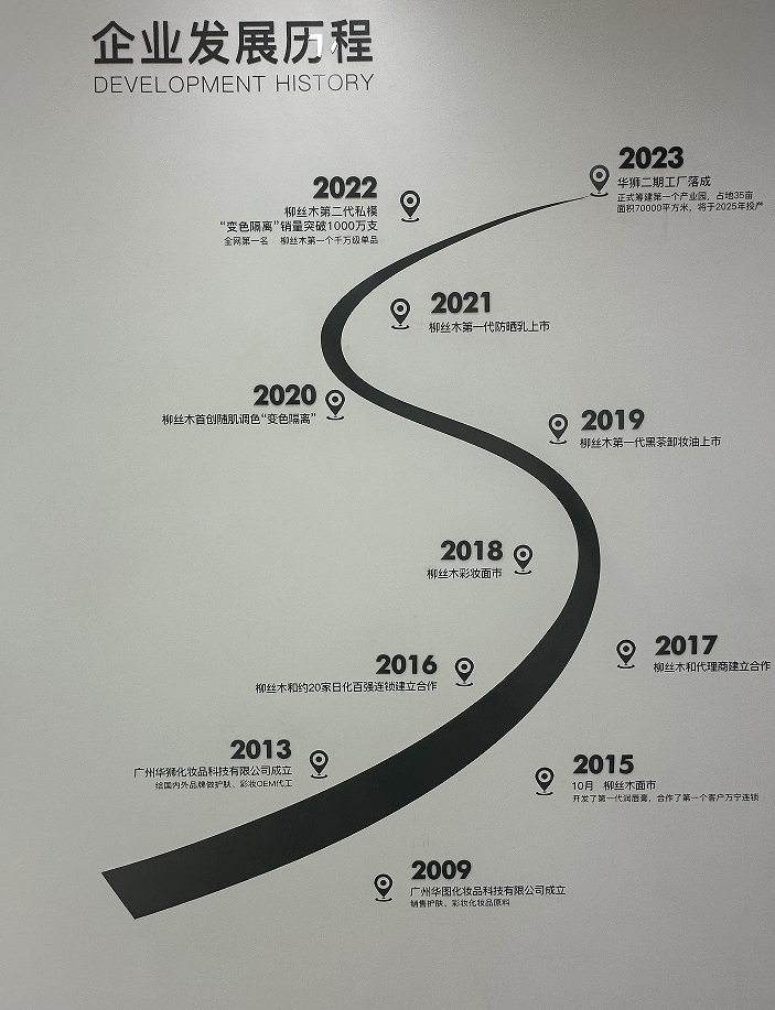 华狮化妆品公司主营业务为化妆品原材料及成品的研发、制造与销售,公司于2015年成立自主品牌柳丝木,定位为大众消费化妆品牌,目前共有员工约1100人。