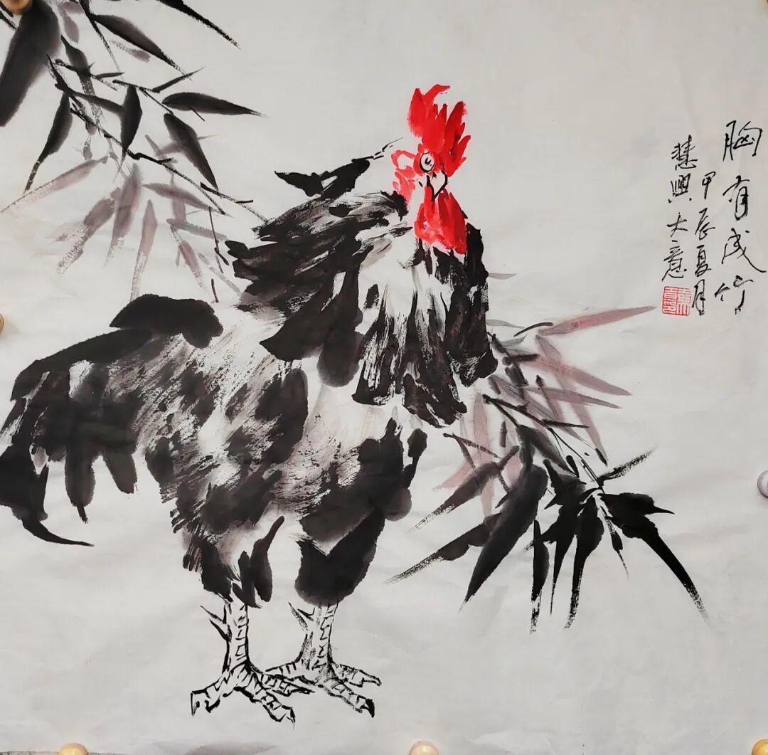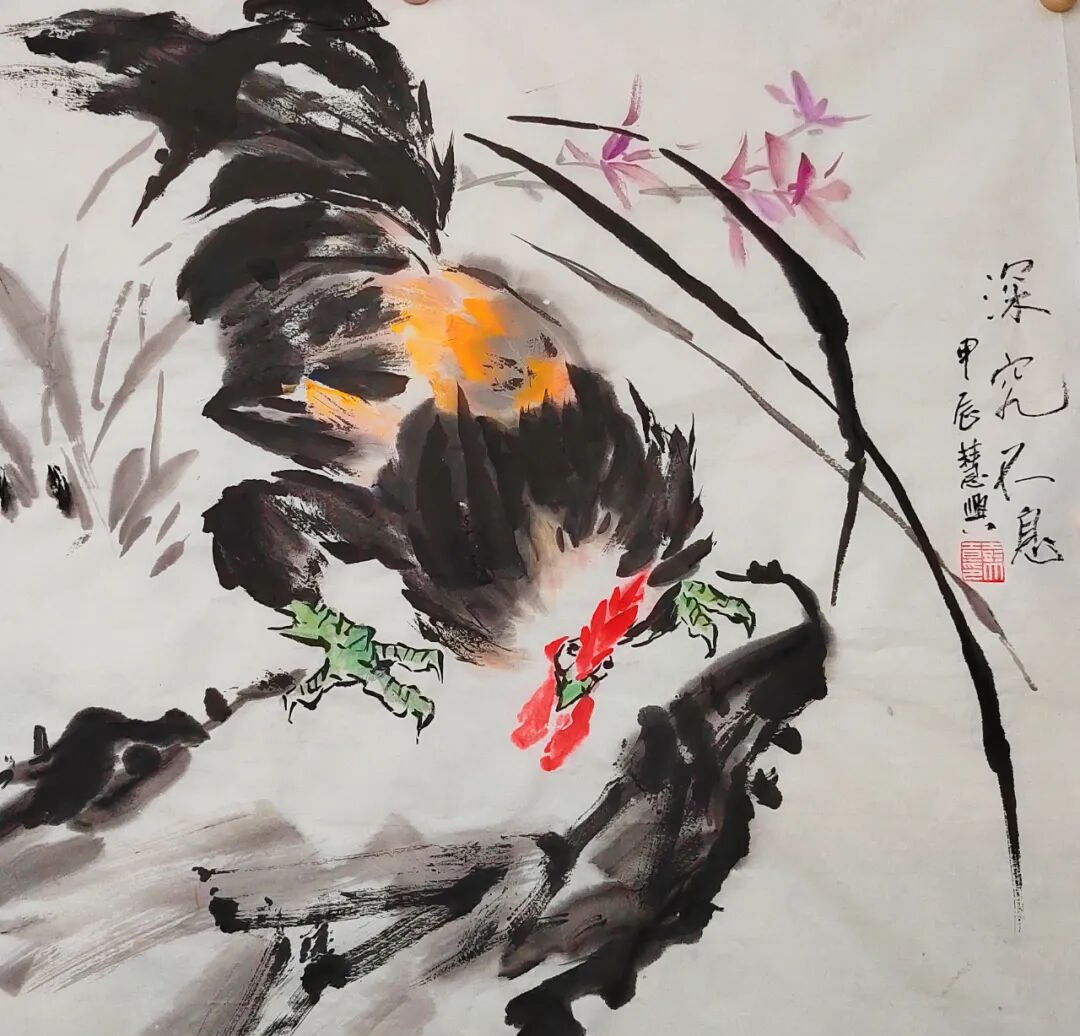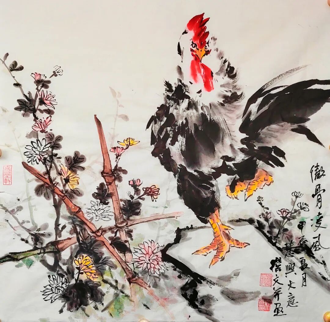 他的画作技巧高超,线条流畅而有力,色彩运用恰到好处,将鸡的羽毛的细腻、鸡冠的鲜艳、鸡爪的刚劲都表现得淋漓尽致。无论是用细腻的工笔勾勒,还是以豪放的写意挥洒,都能让观者感受到他深厚的艺术功底和对绘画的热爱。