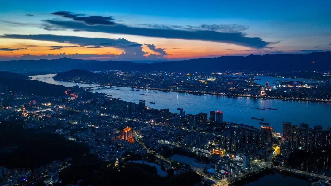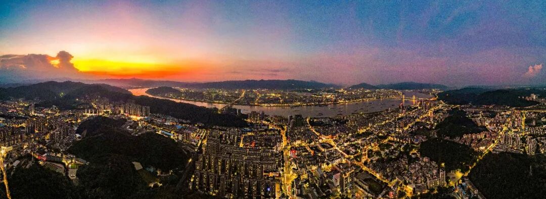 ▲ 晚霞迷人,华灯初上。以上两图 邹华彬 摄