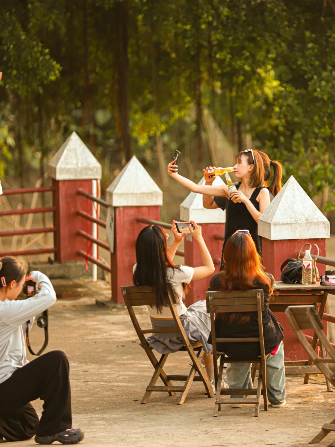 ▲ 市民游客在上清湾村“打卡”晚霞。以上三图 陈彦