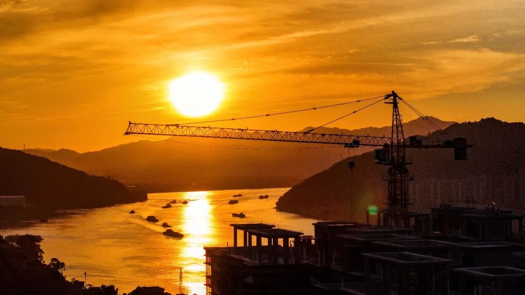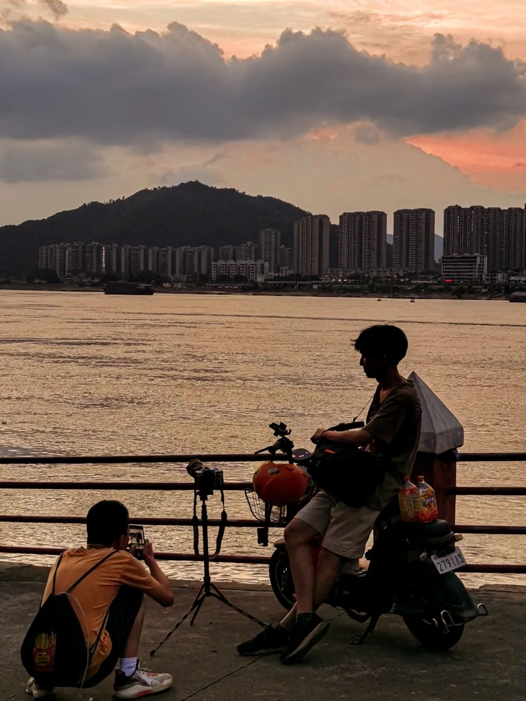 ▲ “超级晚霞”映照下,西江“黄金水道”变得更具象化。赖家乐 摄