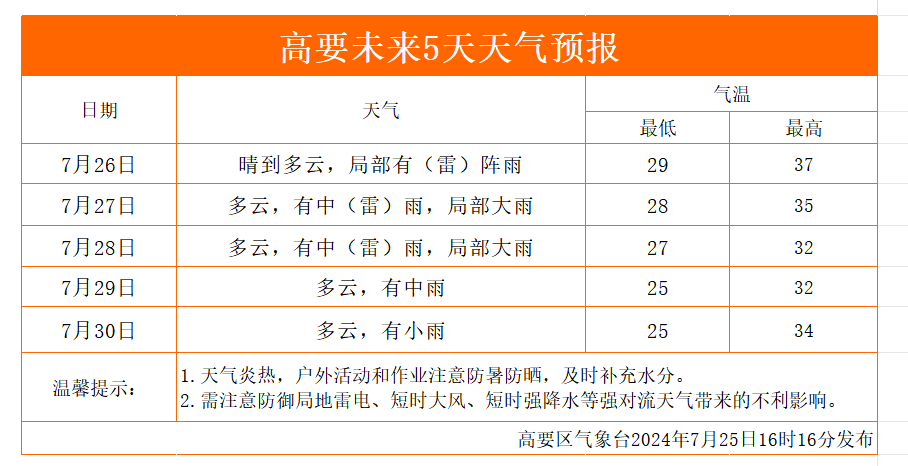 天空很美,但是天气也是真的热!昨天到今天下午,我区晴到多云,今天白天最高气温36.6℃。目前,我区高温橙色预警信号正在生效。受“格美”外围下沉环流影响,26日,我区高温炎热持续,局部有(雷)阵雨;27日到28日,我区将有一次中到大雨降水过程,雷雨时局地伴有短时强降水、短时大风、雷电等强对流天气。大家要注意防暑防晒,记得出门要带伞~