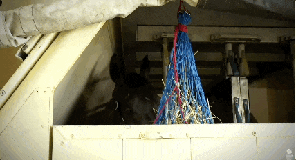 马夫通常会给它们一点糊糊状的混合饲料,有助于它们的水分补充。它们还会得到一些谷物混合物,可能还有一些燕麦,这是所谓的硬饲料,通常会将其与糠还有补充剂混合起来。除此之外,干草会放在它们面前,它们可以整天嚼着吃。