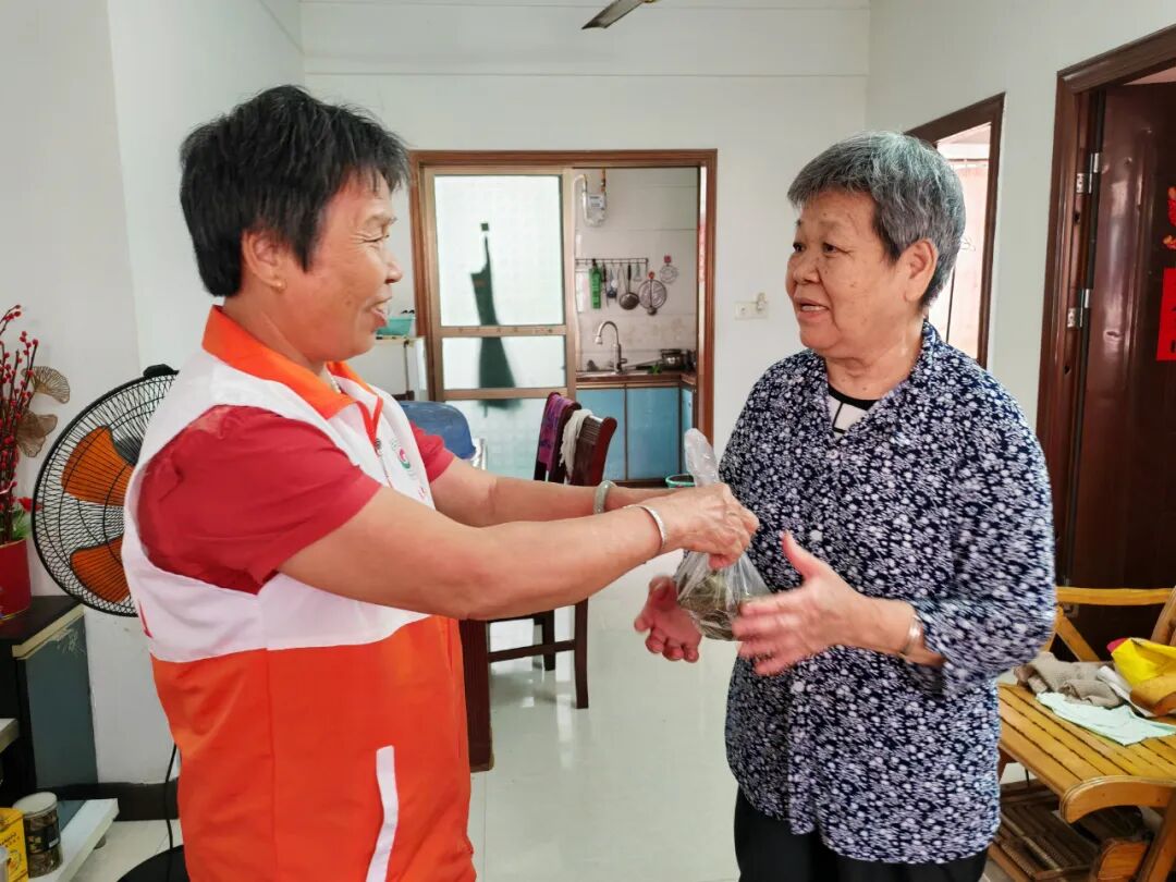 △低龄老年人志愿者(左)参加社区志愿服务活动。
