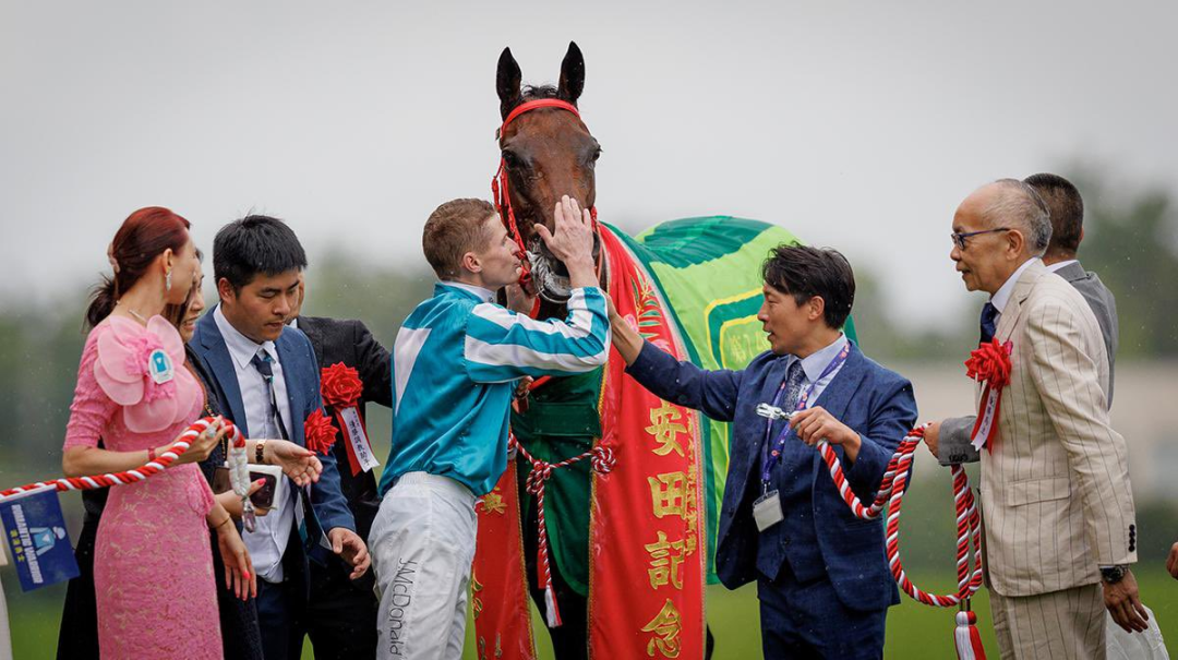 “浪漫勇士”(ROMANTIC WARRIOR,爱)6月2日于在骑师麦道朗胯下成功夺下一级赛安田纪念桂冠后,成为继“靓虾王”(2000年)、“牛精福星”(2006年)后,又一匹可以扬威这场一级赛的中国香港佳驷。