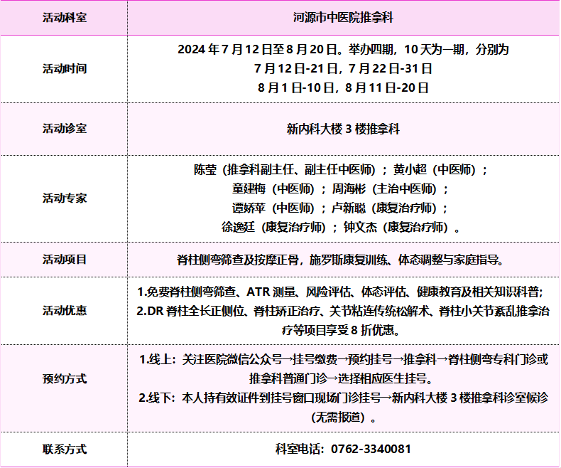 暑期惠民活动之——脊柱侧弯训练营(推拿科)