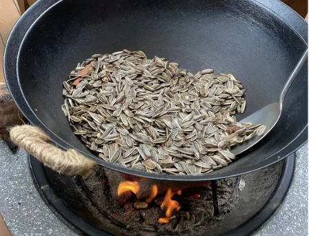 在专业老师的带领下,让孩子们亲自动手炒制葵瓜子,品尝劳动成果。