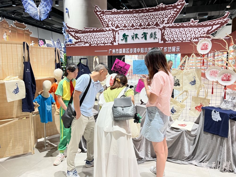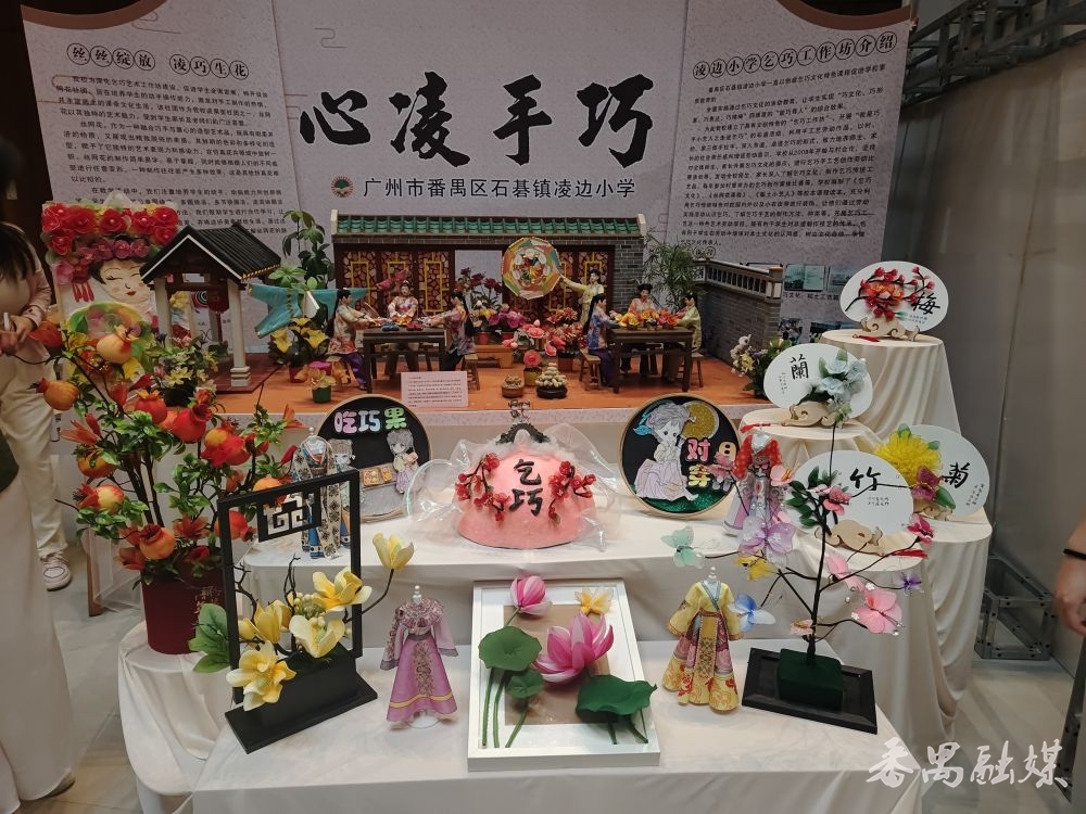 活动上,来自番禺区中小学和幼儿园的师生向大众分享了各具本校特色的文化研学探索成果以及非遗传承作品展示,涵盖水乡民俗、纺织设计、科技创新、非遗文创等类别,融入了龙舟、鳌鱼舞、飘色、乞巧、醒狮、粤剧、剪纸、漆艺、广东音乐等非遗元素,吸引了大批观众驻足观看。