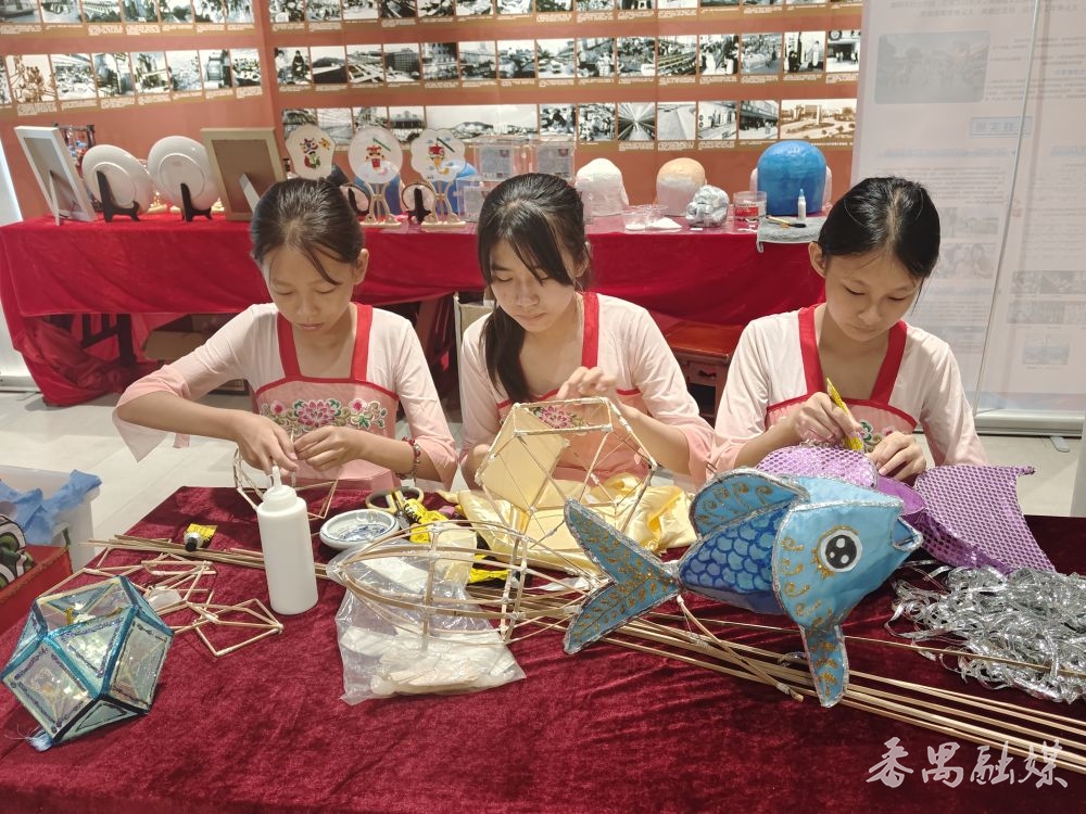 学生现场展示鱼灯制作技艺