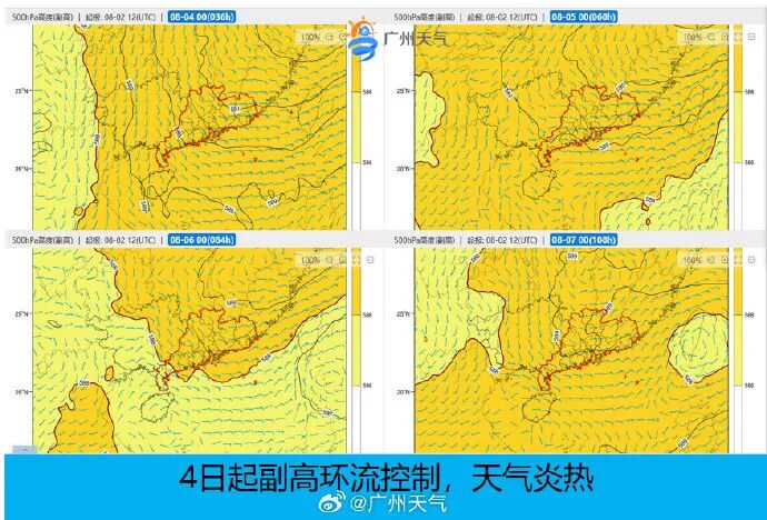据@广东天气预计,本月广东或将出现持续性高温天气,可能有3次大范围高温过程,大致出现在8月4~10日、18~22日、25~27日。月内可能有1~2个热带气旋登陆或严重影响广东,大致出现在中旬前中期及下旬中后期。