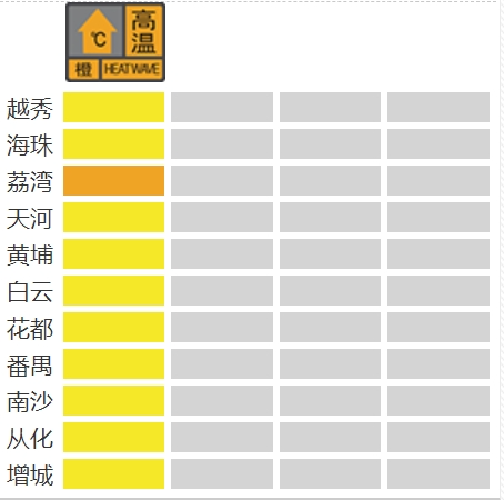 荔湾区高温橙色预警正在生效