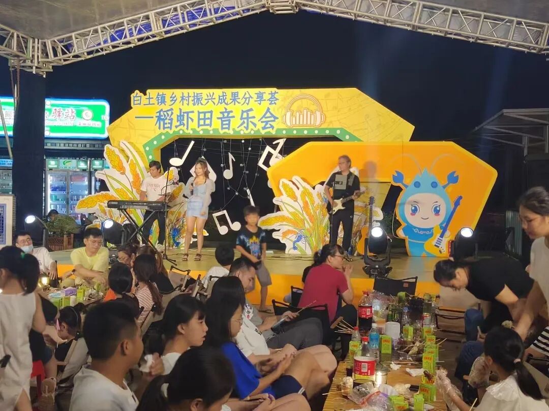 产业协同:激发罗氏沼虾三产融合新动力。工作队坚持以产业链思维,推动罗氏沼虾产业链的延伸和补充。结合粤港澳大湾区(肇庆高要)预制菜产业园建设,促进罗氏沼虾预制菜加工和冷链运输产业发展。结合乡村振兴示范带建设,将美丽虾场纳入其中,形成一条集观光、娱乐为一体的旅游路线。同时,通过举办稻虾田音乐会、发布“罗小虾”卡通吉祥物、编制白土镇美食地图、开展“田头直播”等多种形式,进一步推动农业休闲旅游产业发展。