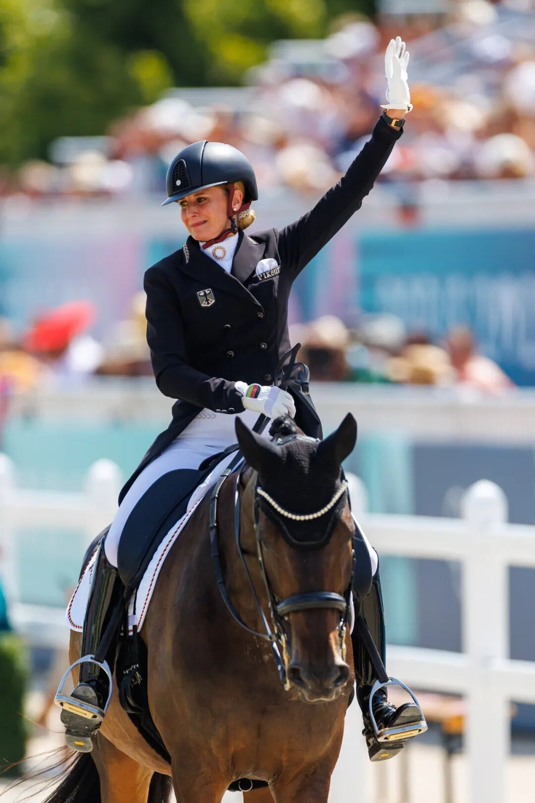 德国的杰西卡·冯·布雷多·韦恩德尔携手她的母马"TSF Dalera BB",以卓越的表现再次征服了评委和观众,连续第二次摘得奥运会盛装舞步个人赛的金牌。她的同胞,伊莎贝尔·韦特,与她的爱马"WENDY"并肩作战,以精湛的技艺赢得了银牌。而英国骑手夏洛特·弗莱与她的种马"GLAMOURDALE"则以出色的表现获得了铜牌。