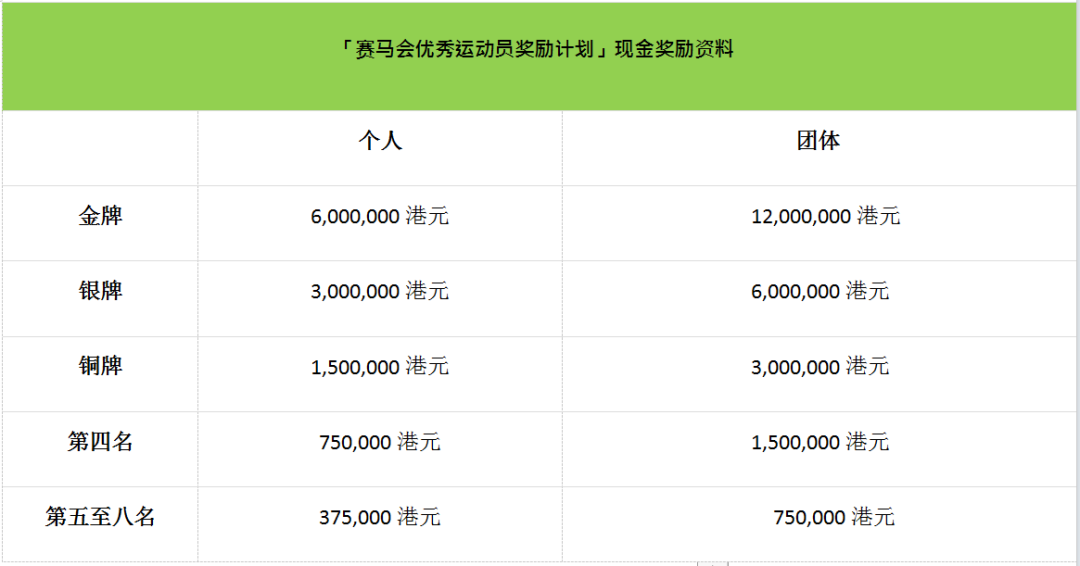 香港马会把体育及青少年发展列作策略重点之一,并赞助香港体育学院于2023年推出的赛马会优秀运动员奖励计划今年「加码」,本届巴黎奥运的奖金与上届比较,增加两成,个人金牌的奖金上调至600万港元,借以激励香港运动员力争佳绩。
