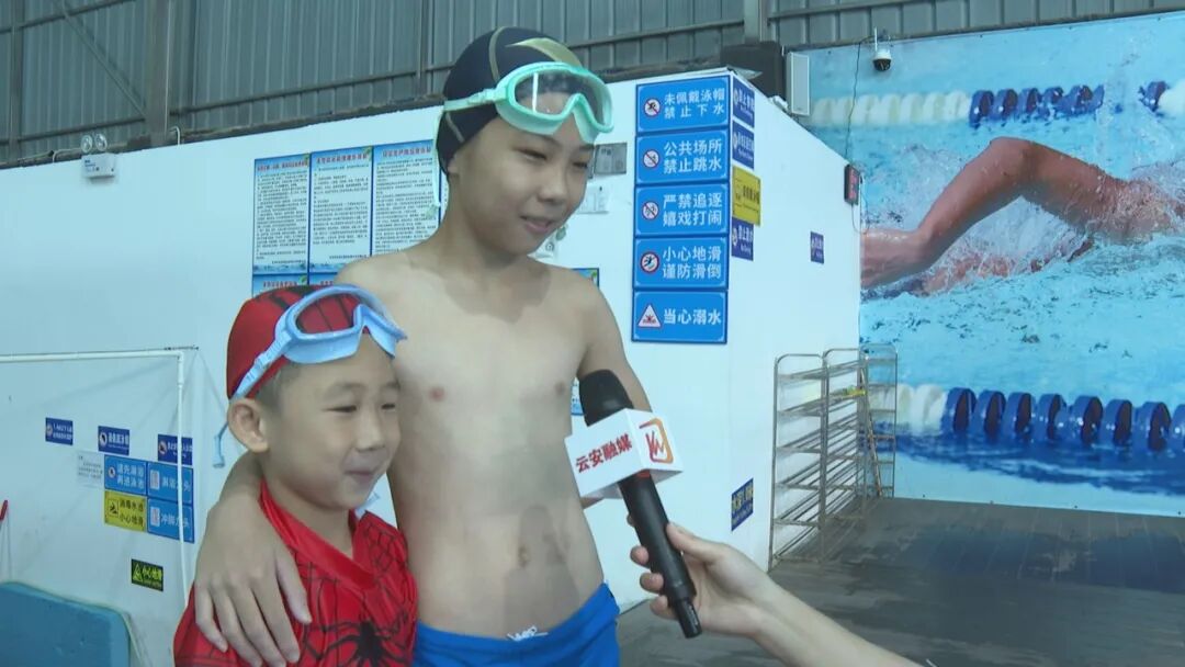 爱运体育馆 李教练:因为现在正值暑假期间,许多家长带领孩子来游泳馆学习游泳,(让小朋友)在消暑降温的同时可以锻炼身体。