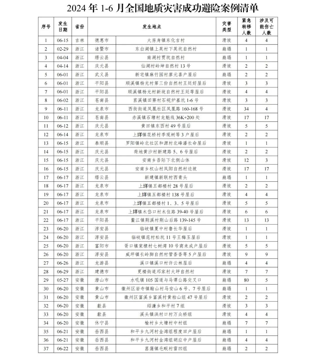 2024年以来地质灾害成功避险典型案例