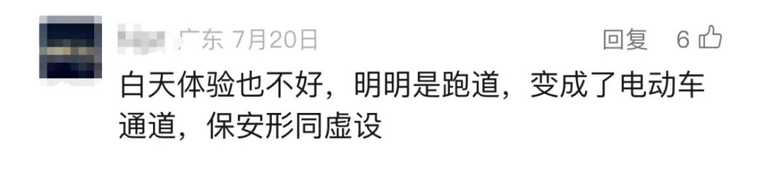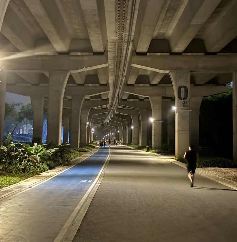 较16天前的第一次走访,现场增设了不少引导标志及安全减速装置,保障市民出行安全。在跑步道、漫步道、骑行道均有明确的指引标识与不同的灯组设计。