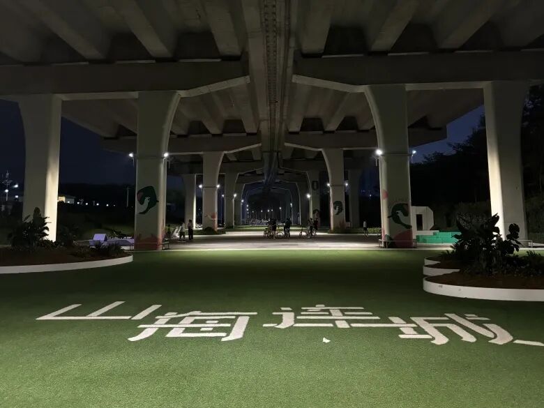 奥一新闻记者在8月5日回访山海连城前海湾段步道时发现,现场路灯已亮起,且灯光较强,有不少市民正于步道内骑行散步,此前看不清的指引标识,在亮灯后也清晰可见。
