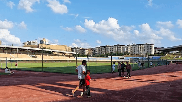 体育场一年四季都免费对市民开放,还有游泳池、足球场等配套设施齐全!早上和傍晚时刻,来这里运动的人非常多,浓浓的运动氛围让人忍不住跟着一起动起来!