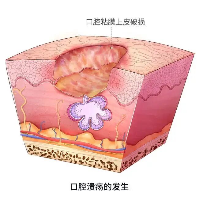 口腔溃疡是指口腔黏膜上皮的完整性发生持续性缺损或破坏。简单来说,就是我们嘴巴里破了个米粒或者黄豆大小的“洞”,而且周围会出现充血水肿的情况,遇到酸、咸、辣、烫等食物时,会疼得更厉害。