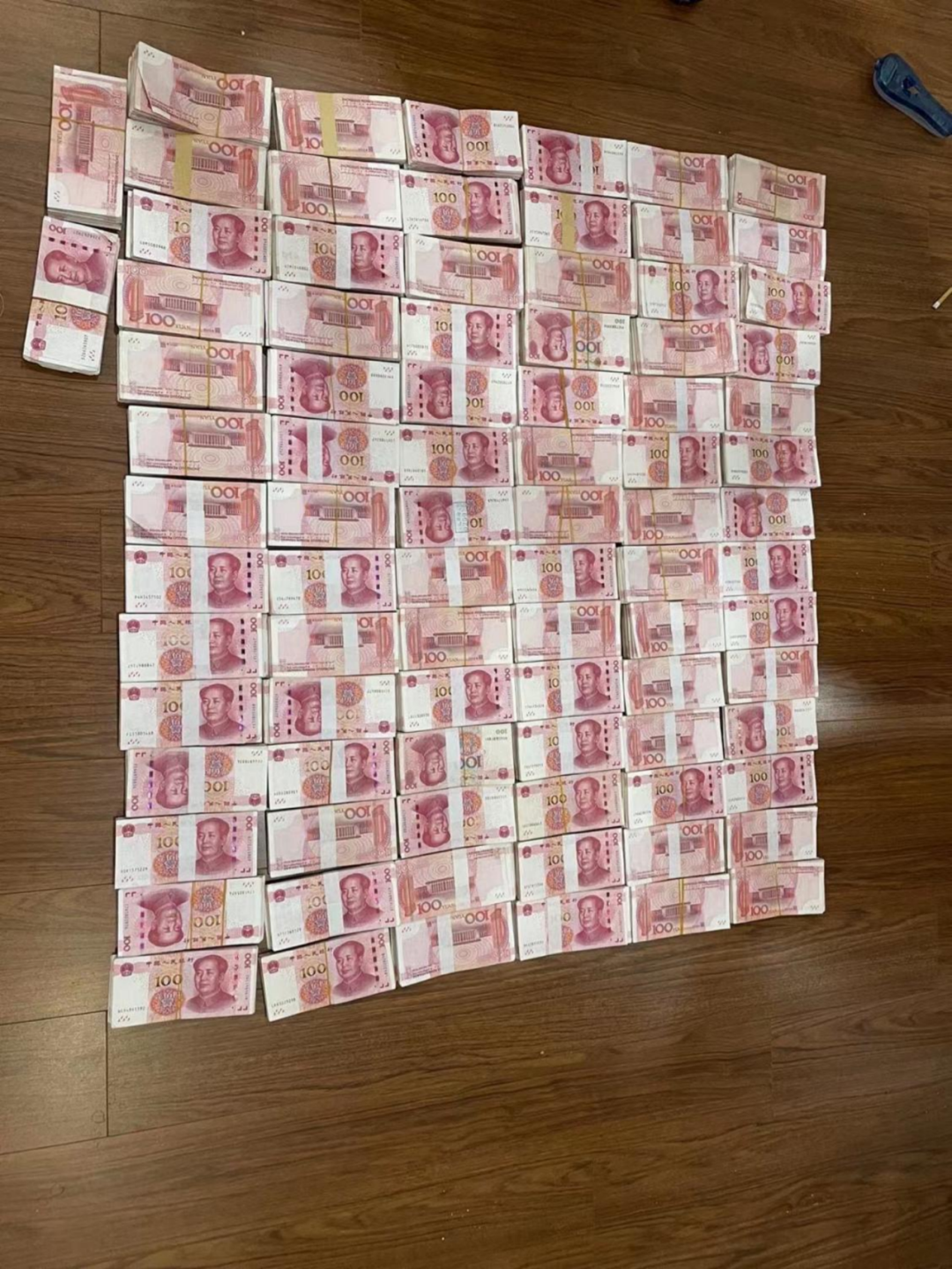 ▲抓捕现场扣押的大量赃款