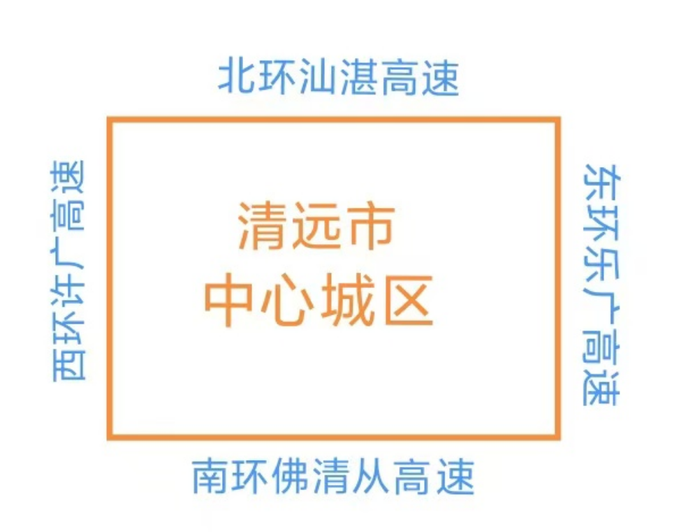 环城高速呈正方形将清远市中心城区包住,形成清远历史上的第一个中心城区“高速环”,全长约105.7公里,市民开车约一个半小时即可绕城一圈。