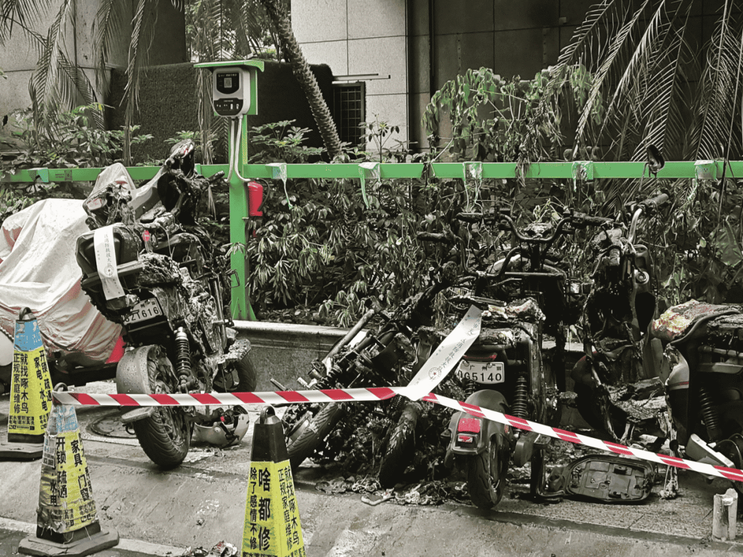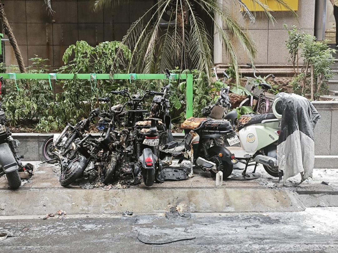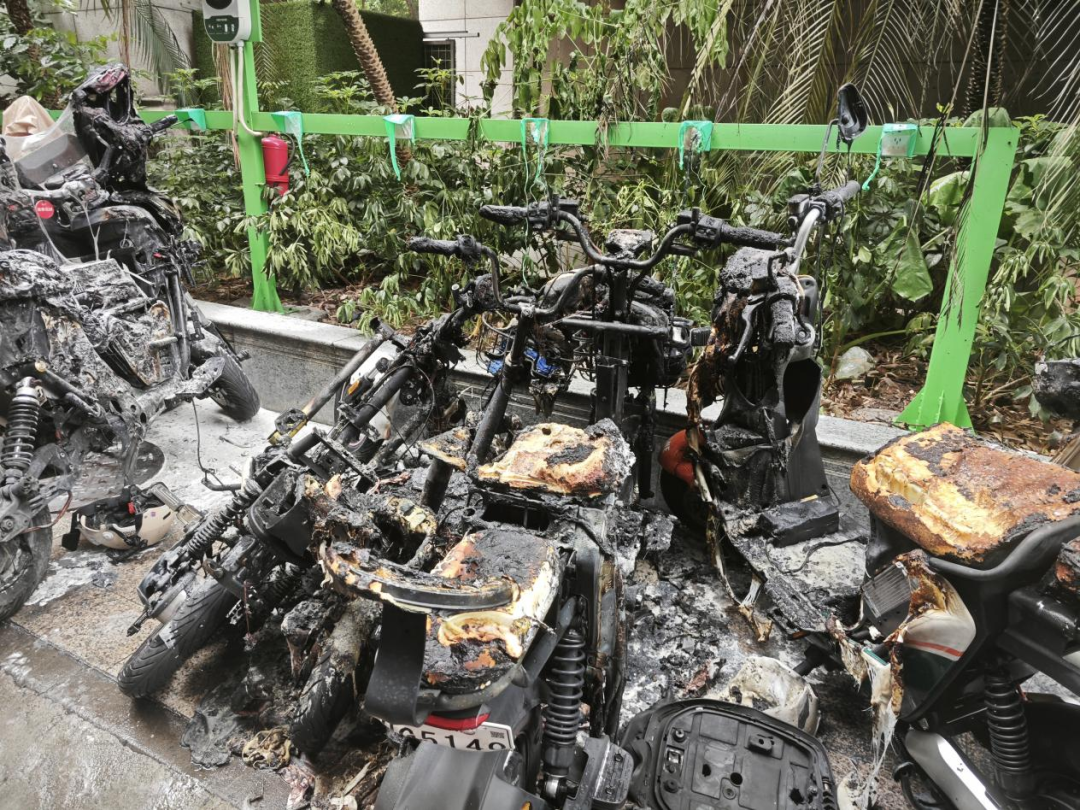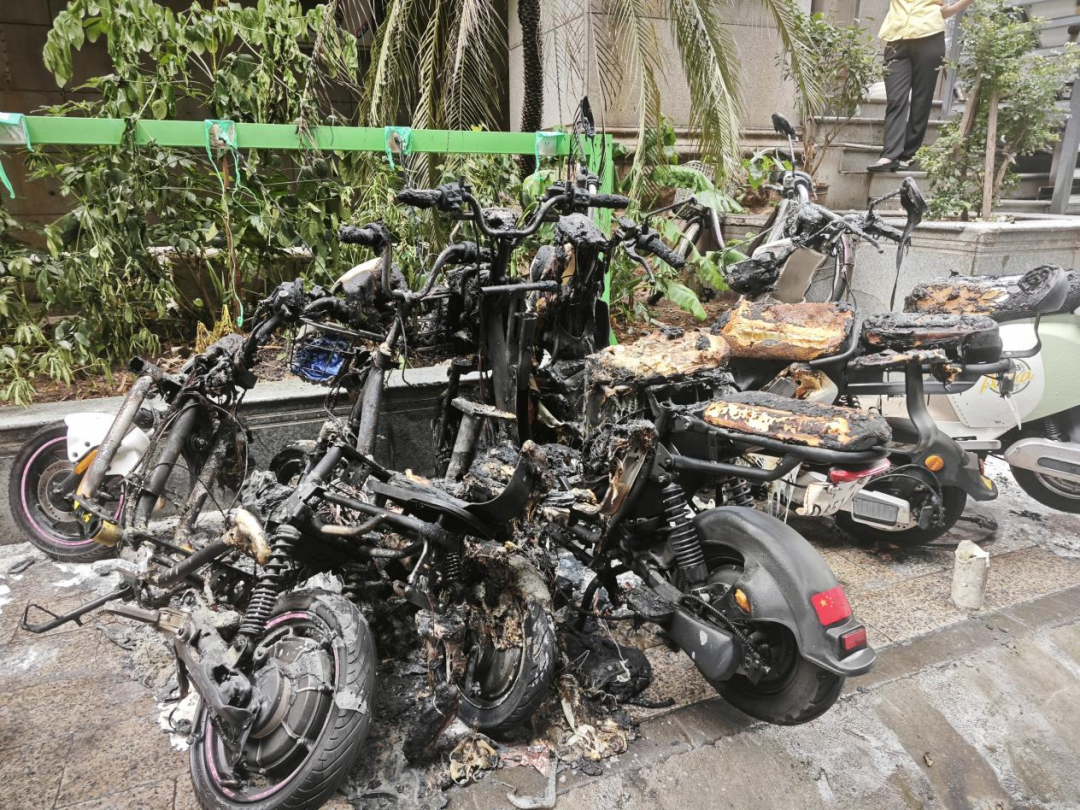 2023年7月2日凌晨,在珠海市斗门区白蕉镇东第花园一电动自行车停车棚发生火灾。所幸该小区物业设置了电动自行车集中充电区域,且事故发生在户外,避免了事态进一步发展,未造成人员伤亡,但烧毁了20余辆电动自行车,不少电动自行车烧得只剩下车架。经初步调查,起火原因为一名外卖骑手将锂电池放置于电动自行车脚踏位置充电,在充电过程中,锂电池发生热失控引燃周边电动自行车。