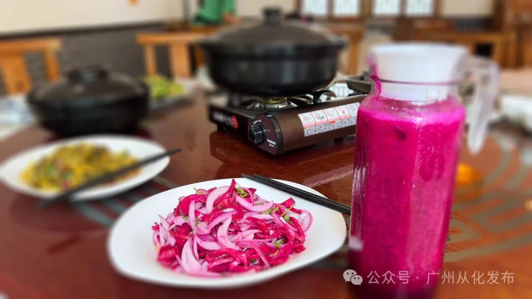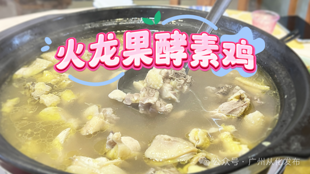 游客除了可以品尝到新鲜美味的火龙果外,还可以品尝庄园特制的火龙果酵素鸡等火龙果宴、火龙果特色冰饮等。