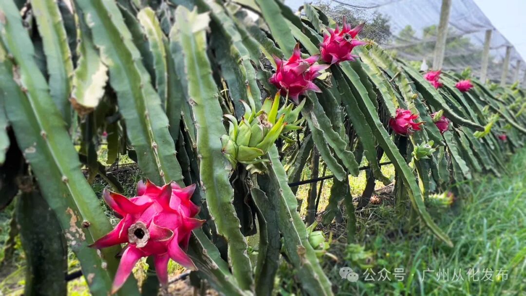 陈惠平还说,从化阳光充足,很适合火龙果生长,一根火龙果枝条会长出很多花蕾,为了保证果实的品质,管理人员往往会一个枝条只保留一个果实,摘掉的花蕾用来做菜式。