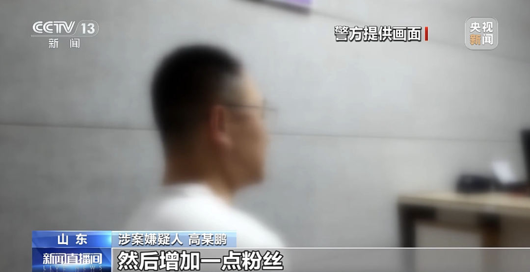 涉案嫌疑人高某鹏承认:“通过这样的视频,增加一点粉丝,增加完基础粉丝以后,最后目的是可以开启直播,然后靠直播打赏挣钱。”