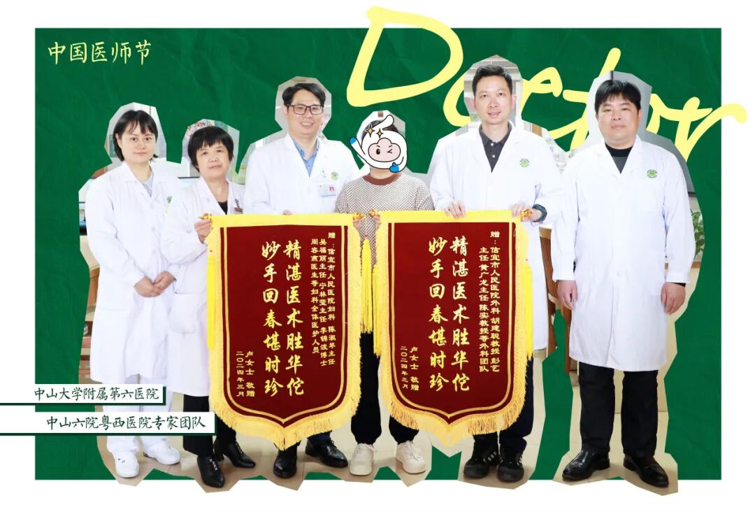 16岁花季少女不幸罹患克罗恩病,因肠穿孔于当地医院接受急诊手术治疗,术后发生吻合口漏、严重腹腔感染、腹部切口裂开转至我院结直肠外科六区接受第2次急诊手术,留置回肠造口。经过半年休学调整和恢复,为不影响学业,1年半的时间带造口坚持完成高中学业,期间在消化内科规律药物治疗。高考结束后复查各项指标良好,填报志愿结束后接受手术回纳造口,以更加良好的身心状态迎接大学生活。手术顺利出院,患者赠上一幅“6”字锦旗,“6”乃是当代年轻人的最高评价!