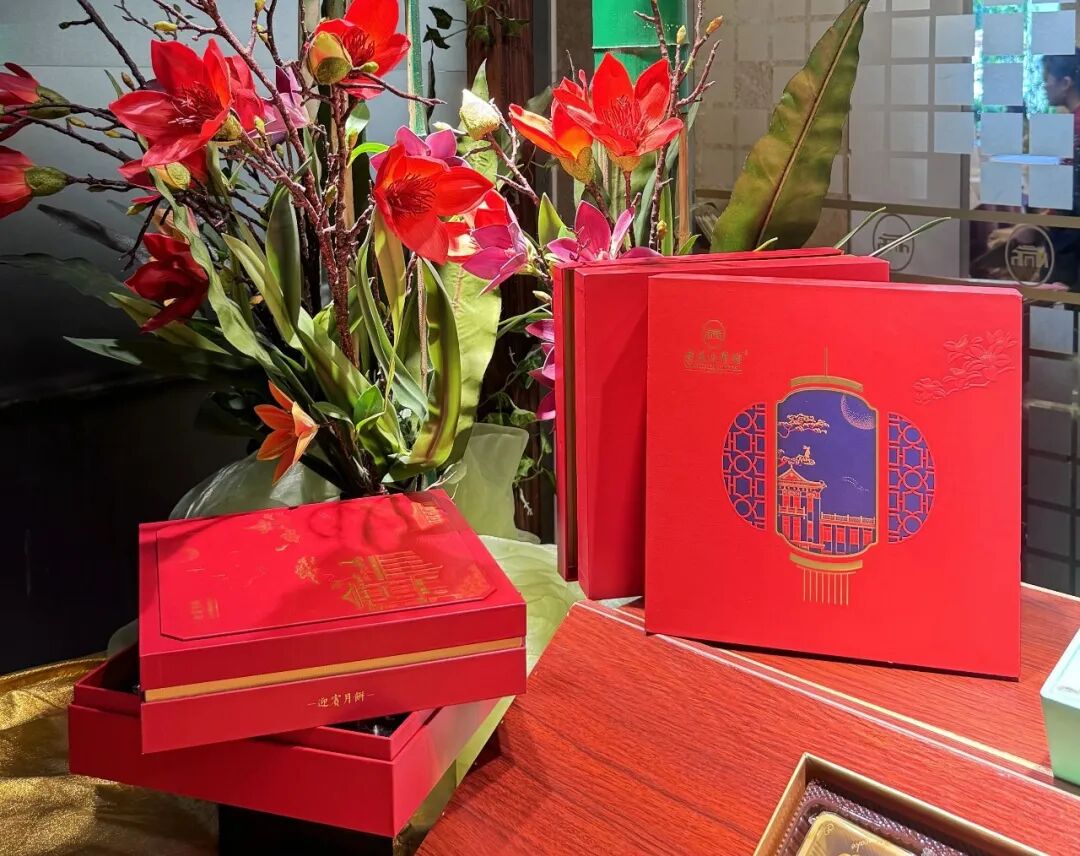 该款“消费帮扶”月饼礼盒设计,融合了传统与现代的美感。礼盒外包装采用了鲜艳的红色为主色调,象征着节日的喜庆与热情。盒面上以烫金工艺勾勒出一盏古典宫灯的图案,灯内映现出广州著名的六榕楼景象,线条细腻而优雅,将这座见证历史、接待过许多中外政要的历史建筑神韵展现得淋漓尽致。宫灯的设计寓意着中秋团圆的温馨氛围,而六榕楼的图案则增添了深厚的历史文化底蕴。整款礼盒在展现视觉美感的同时,也传达了传统与现代交融的设计理念,给人一种既典雅又时尚的感觉。