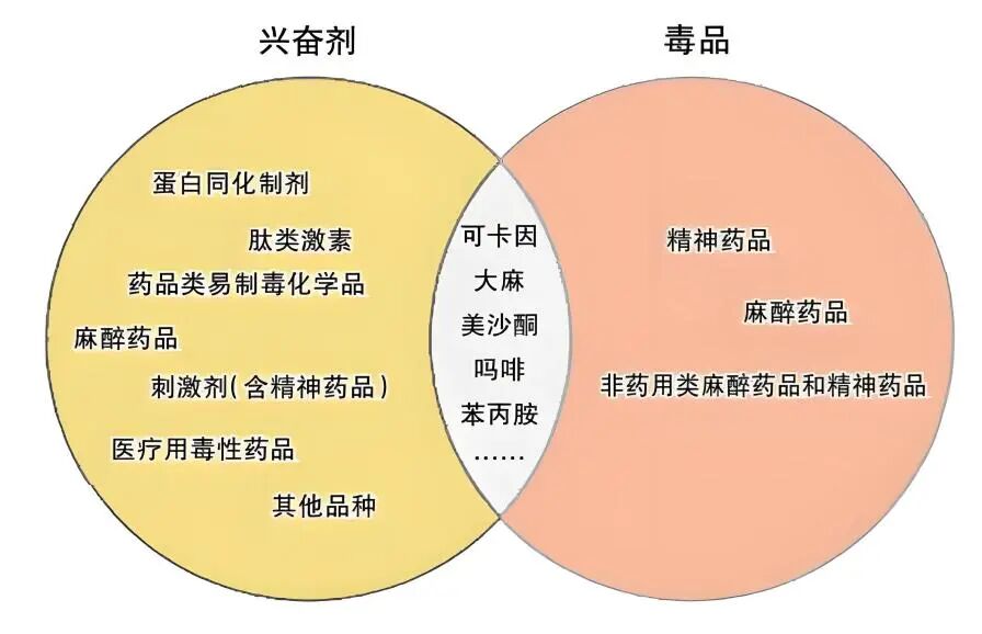 最后,所谓的兴奋剂都是违禁药品么?答案是否定的。虽然“兴奋剂”与违禁药品有一定的交集,但并不是所有的“兴奋剂”都是违禁药品,大部分的“兴奋剂”只是不适合在体育圈中使用而被划定为“兴奋剂”而已。