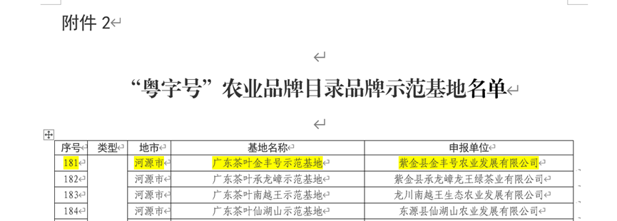 近日,广东省乡村发展协会会员单位、紫金县金丰号农业发展有限公司(以下简称金丰号农业)传来佳讯,其金丰号茶叶基地、“虫咬蝉茶”双双入选“粤字号”农业品牌目录,分别认定为“‘粤字号’农业品牌目录品牌示范基地名单和“‘粤字号’农业品牌目录品牌产品品牌,标志着金丰号农业在打造品质过硬、竞争力强、市场口碑好的本土农业品牌迈出新步伐,取得新进展。