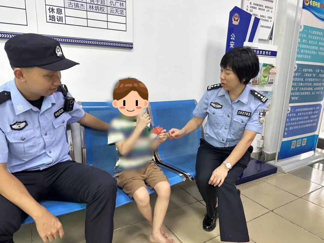 “工业区过往货车这么多,幸好有你们。”家属得知情况后匆匆赶到潭洲警务室,看到孩子安然无恙,其激动不已,连连向民警道谢。