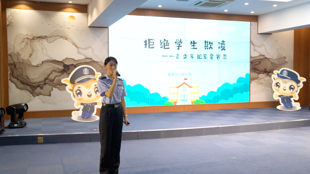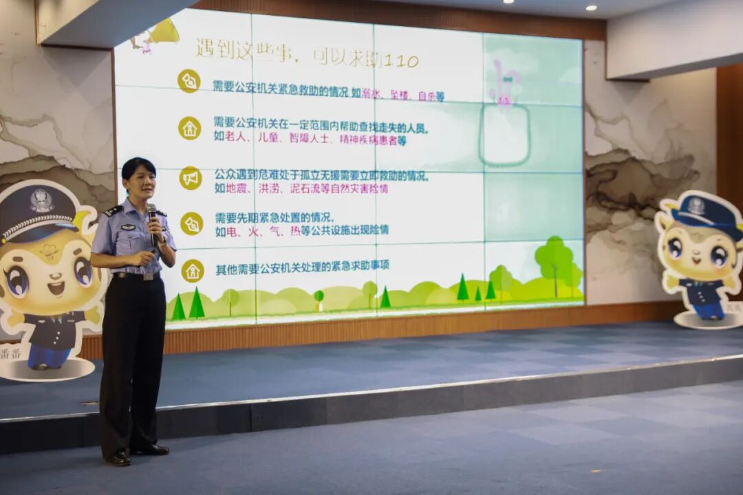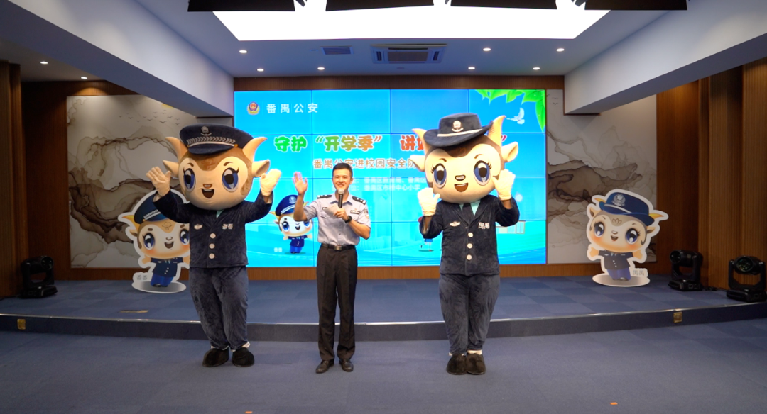 当天活动中,番禺公安四位宣讲民警和番禺公安吉祥物“番番、禺禺”一起亮相,针对青少年学生群体中高发的问题,以学生欺凌、交通安全、防电信诈骗等方面开展宣讲,进一步增强未成年人安全意识和自我防护意识,守护学生们平安健康成长。