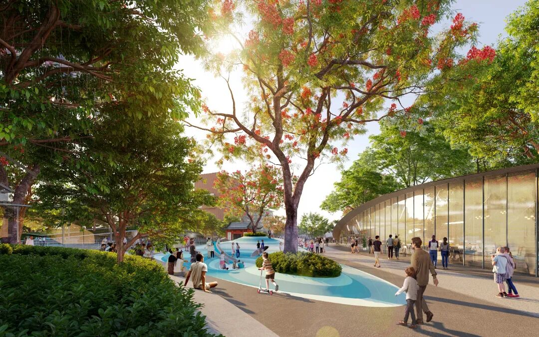 (榕树水景:再现“池塘边的榕树下”那一抹温情的岭南记忆,创造独属番禺的松弛感。)