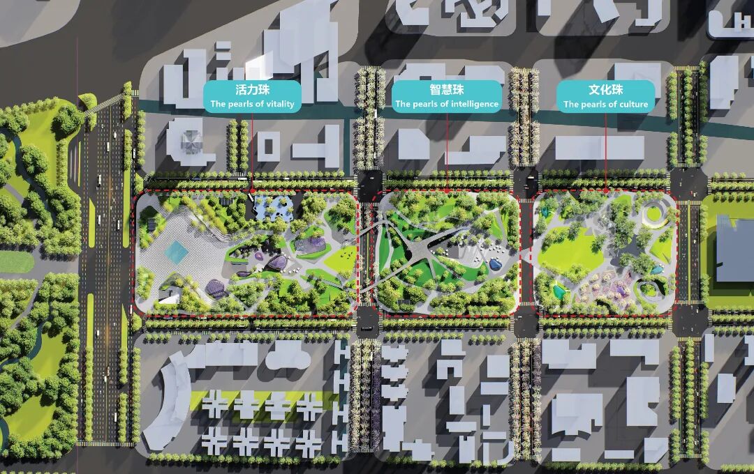 北部活力珠,开放市民广场结合商业地标建筑聚集人气,创造城市活力门户;