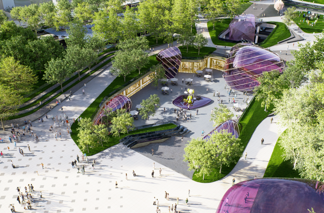 (宝石商业广场:植入时尚未来感的“宝石”商业地标建筑,点亮公园中轴,激活地面上下商业活力)