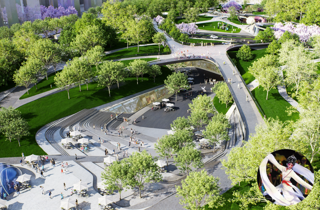 2.下沉广场衔接枢纽,历史老街实现古今融合。